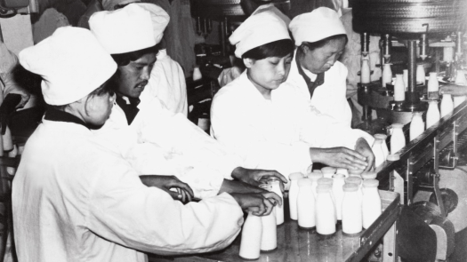 早期伊利生产线上,工人们工作场景