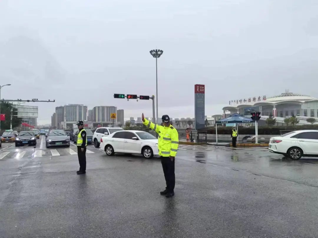 同时,公安处交管支队还与呼市交管支队建立联动机制,及时互通信息,车流量较大时采取远端分流疏导等措施,引导车辆快速抵离车站。机动大队在落客平台等车流量较大的路口路段派警增援,协同开展交通秩序维护。