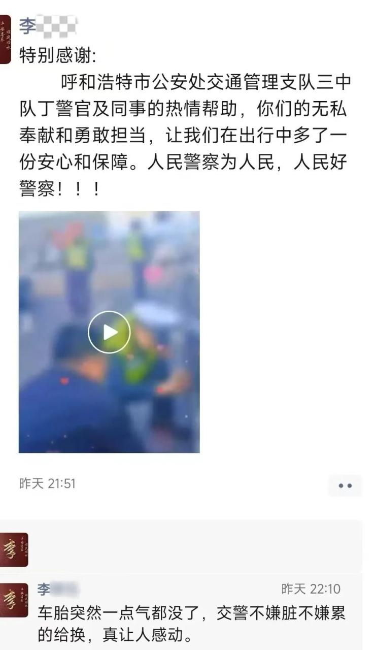 近日,市民李先生驾车行驶至呼和浩特东站出站道,汽车轮胎突发故障,无法正常行驶,交管支队民警了解情况后,迅速协助李先生排障驶离,李先生表示由衷的感谢。