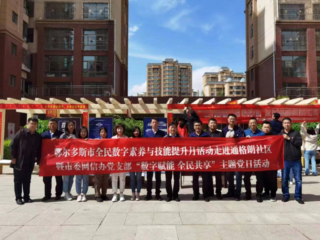大公网内蒙古讯(记者王月 通讯员李阳光)数字素养与技能是数字社会人们学习工作生活应具备的数字获取、制作、使用、评价、交互、分享、创新、安全保障、伦理道德等一系列素质与能力的集合。为深入推动全民数字素养与技能提升月活动开展,促进全民共建共享数字文化成果,提高广大党员干部和群众运用互联网技术和信息化手段开展工作、服务生产生活的本领,2023年5月24日,市委网信办党支部赴伊金霍洛旗通格朗社区世纪华庭B区开展鄂尔多斯市全民数字素养与技能提升月活动走进通格朗社区暨市委网信办党支部“数字赋能 全民共享”主题党日活动。市委网信办全体党员干部、伊金霍洛旗委网信办党员干部和通格朗社区干部群众参与了此次活动。