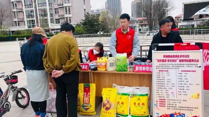 从拉杆箱、自行车到舍弃的家电衣柜、旧衣物……居民们拿着“废弃物”,按照大小、材质、重量等在小区里的“回收站”进行物品置换,换回鸡蛋、米面油、牙膏等生活必需品和日用品。