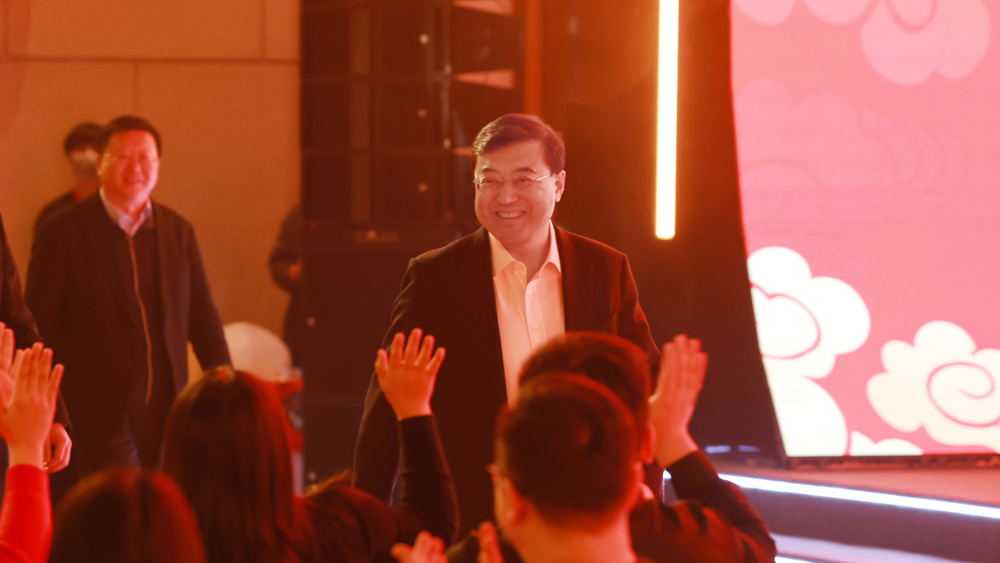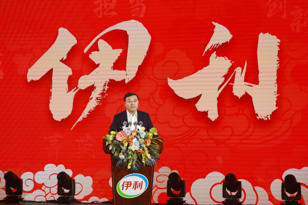 伊利集团董事长兼总裁潘刚发表讲话、与业绩菁英及家属互动