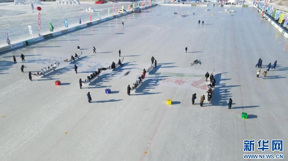 1月18日,2024—2025冰上龙舟超级联赛总决赛现场(无人机照片)。新华网发