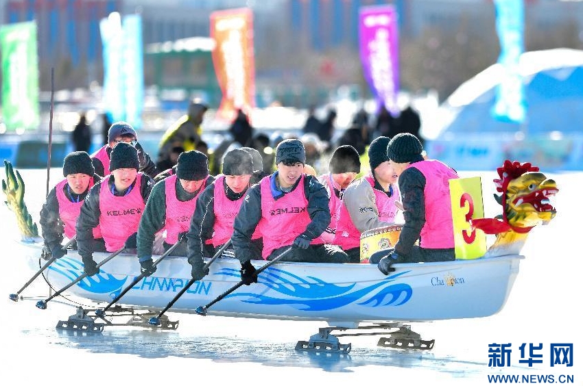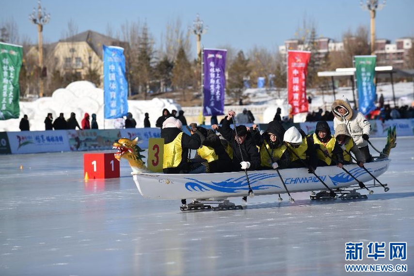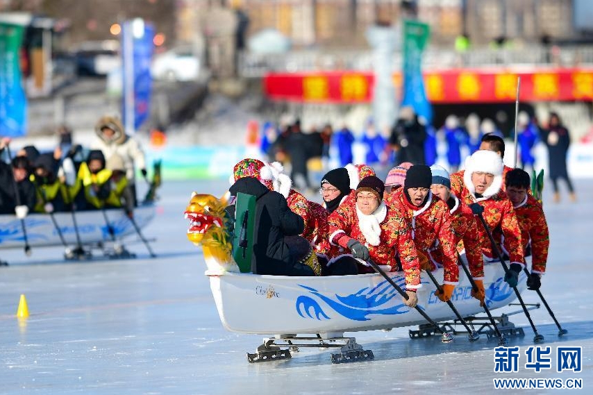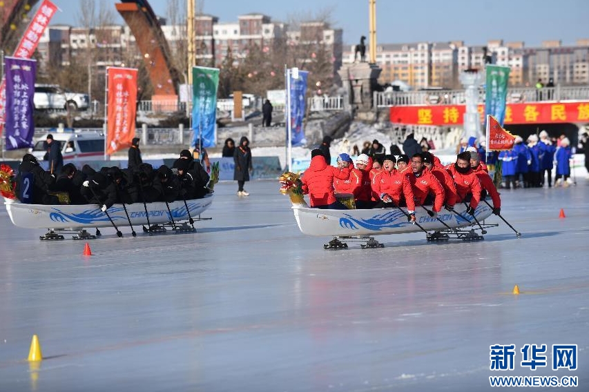 1月18日,2024—2025冰上龙舟超级联赛总决赛现场。新华网发(赵光耀 摄)