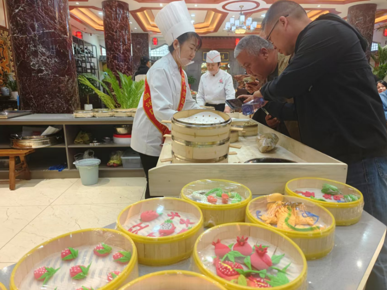 “月明楼”以呼和浩特传统老菜烧麦、莜面、烤全羊、过油肉等为核心,并搭配川湘菜、粤菜,展现多元饮食文化的碰撞。还邀请非遗美食传承人现场演示传统美食技艺,打造呼和浩特“美食地标”。还聚焦“草原奶食档”酸奶、奶皮、奶豆腐,结合文化旅游宣传,打造“来呼必打卡的美食聚集地”。