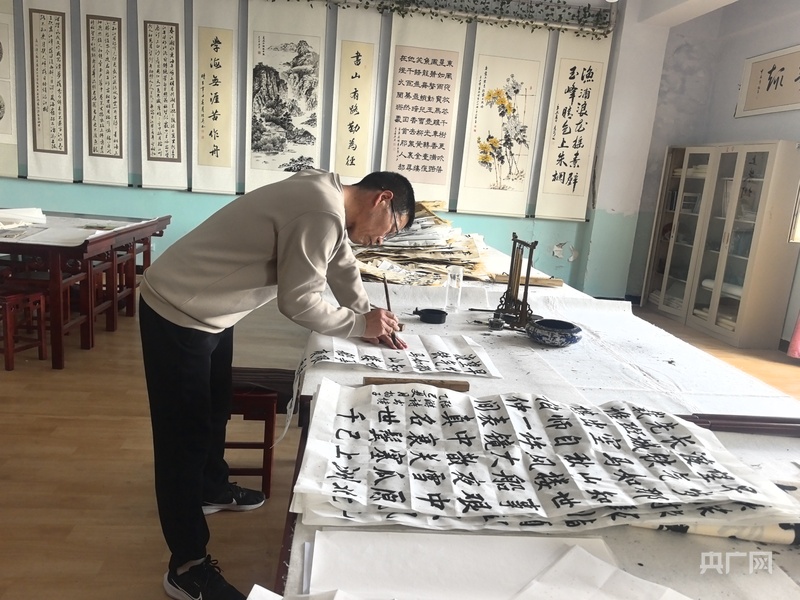 书画教室里,授课老师在挥毫泼墨(央广网记者 邵玉琴 摄)