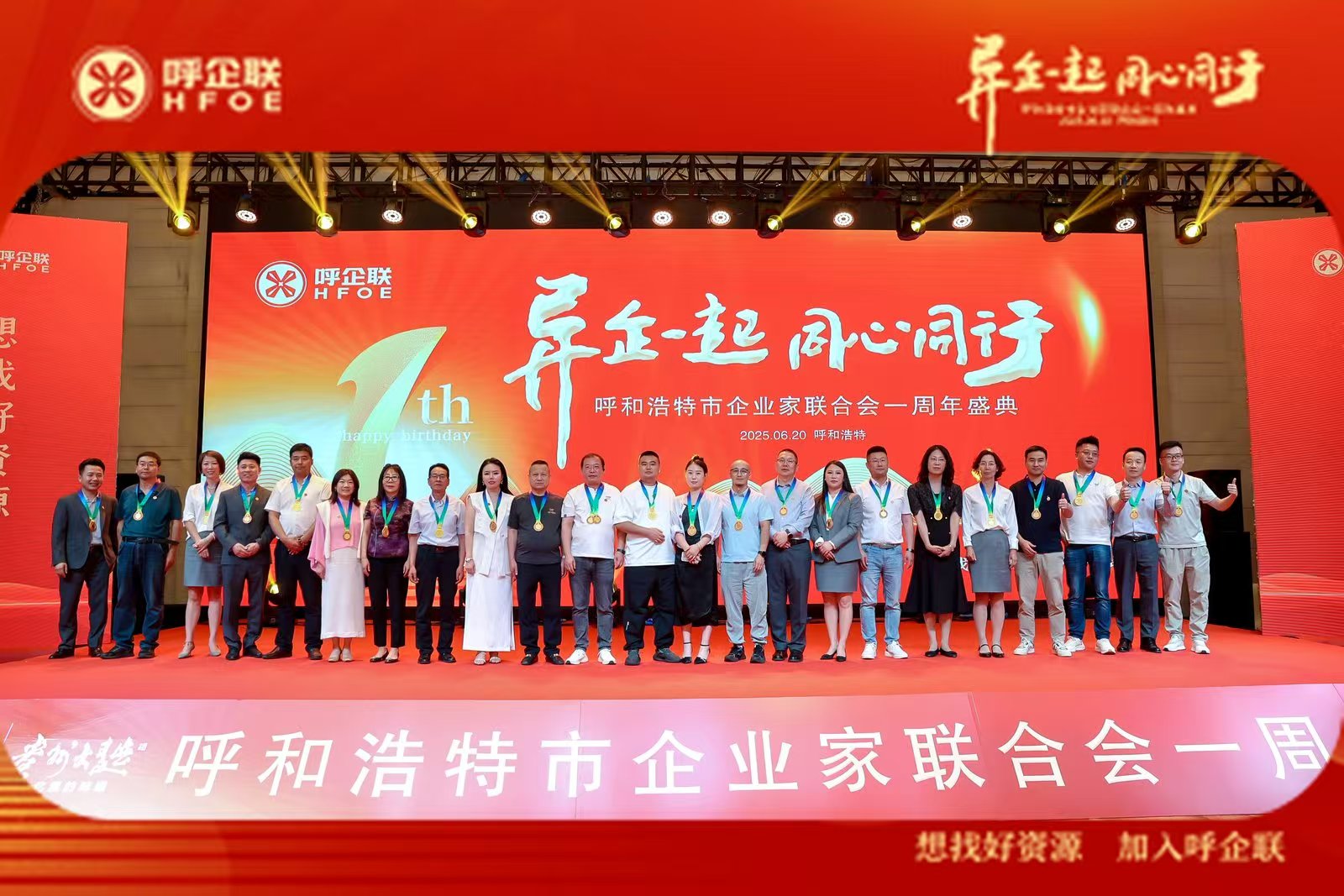 香港文汇网讯(记者王月) 6 月 20 日,呼市企业家联合会(以下简称 “呼企联”)在呼和浩特喜来登酒店隆重举办成立一周年庆典。内蒙古自治区工商联、内蒙古自治区消费者协会、呼市工商联发来贺电,与 336 家会员企业代表共襄盛举,见证商协会一年来的成长蜕变与数字化转型新征程。