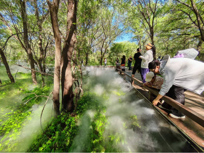 2019 年起,乌兰浩特市通过石碴垫土、栽树复绿、蓄水净化等生态修复措施,让旧沙坑焕发新生。如今的神骏湾日均接待游客超 300 人,水上浮桥、造浪池等项目成为暑期热门。景区优先吸纳村民就业,带动50余人增收,更催生了4 家农家乐、特色民宿和采摘营地。