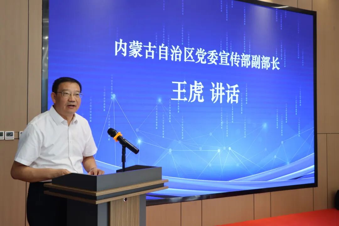 受内蒙古自治区党委常委、宣传部部长包献华委托,王虎讲话,他指出内蒙古与上海虽相隔千里,但长江与黄河的文明脉络、两地的合作情谊早已跨越地理阻隔。此次“江河对话”既是两地社科界贯彻落实习近平总书记关于哲学社会科学重要论述的具体实践,也是深化区域合作、以社科智慧服务内蒙古两件大事的使命担当。