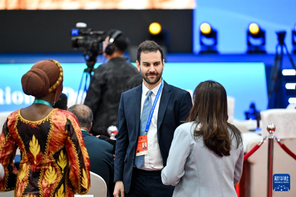 9月16日,参会人员在第十届库布其国际沙漠论坛开幕式前交流。 新华社记者 李志鹏 摄