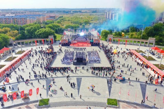 香港文汇网内蒙古讯 中秋月满,家国同庆。9月26日,丰镇市府前广场锣鼓喧天、人流如织,丰镇市第八届月饼(美食)文化周暨迎国庆群众文化活动在此盛大开幕,以百年饼香传承文化记忆,以欢歌为礼共贺祖国华诞。