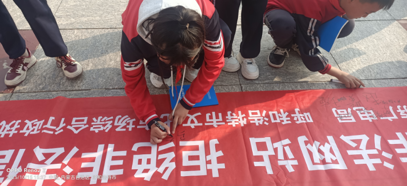 在护苗2025进校园活动现场,向学生派发“绿书签”和“扫黄打非”知识宣传手册,向在校学生宣传、普及“扫黄打非护苗”相关政策和法律知识,提高未成年人“保护知识产权、抵制非法信息”的意识,执法人员、学校师生在“文明上网、健康上网、远离非法网站、拒绝非法信息”的宣传条幅上签字;呼和浩特市新华书店有限公司等爱心企业向和林格尔县公喇嘛中心校捐赠图书1200册;市文化市场综合行政执法局向和林格尔县公喇嘛中心校捐赠学习用品100件、生活用品150件(套)。