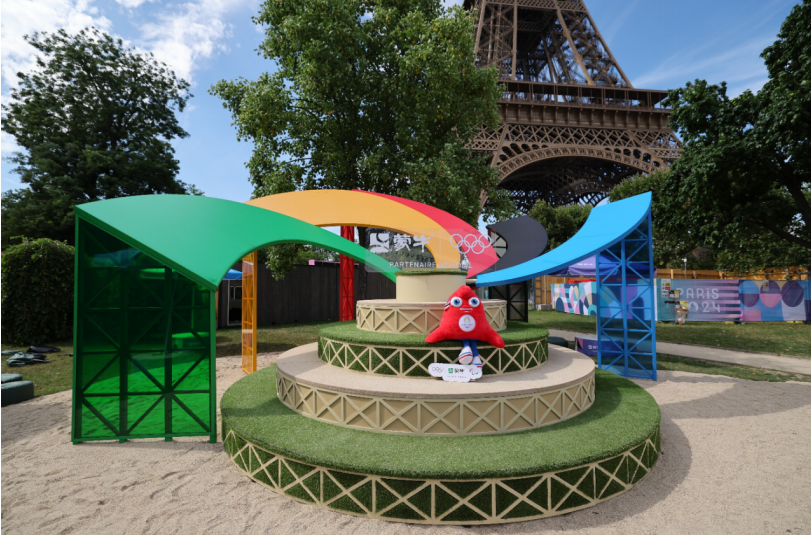 2024年巴黎奥运期间,蒙牛将乌兰布和沙漠治理成果带到了巴黎。在埃菲尔铁塔下的沙滩排球场,蒙牛打造了一块140平方米的沙漠绿洲休闲区,向全球展示了中国防沙治沙的成果与决心,并呼吁更多人加入绿色行列。