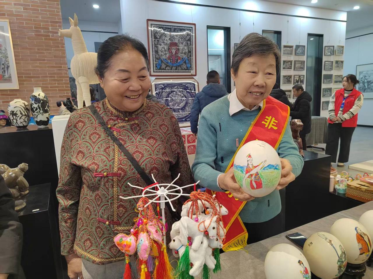 来自准格尔旗的蛋壳雕刻非物质文化遗产代表性传承人刘玉芝带来蛋壳雕刻作品,题材丰富,从鸵鸟蛋到鸽子蛋皆可成作,包括草原儿女、十二生肖、八仙过海、梅兰竹菊等,其十二生肖蛋雕作品在法国巴黎国际博览会“遇鉴中国”中华文化主题展上首次走出国门,受到外宾喜爱。此外,她还通过手把手现场教学等方式推广蛋雕技艺,让更多人感受非遗魅力。