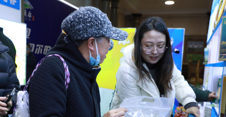 走进莫旗展区,浓郁的乡土气息与文化韵味扑面而来。货架上,颗粒饱满的大豆、色泽金黄的甜糯玉米、个大饱满的榛子、果皮鲜亮的姑娘果等农特产品整齐陈列,带着草原黑土的滋养,刚一亮相便吸引众多嘉宾和市民驻足咨询、品尝选购。