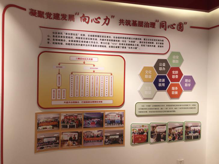 通道街街道党工委书记杨卓新与三顺店社区党支部书记李一之介绍道:社区共分为美好生活、凝心聚力、志愿奉献、民族团结四个功能板块,集为老服务、党群活动服务中心、社区蜂巢、文体活动功能为一体,设有民族之家、统战之家、党员之家、妇女之家、青少年之家、职工之家、社区蜂巢等功能室。