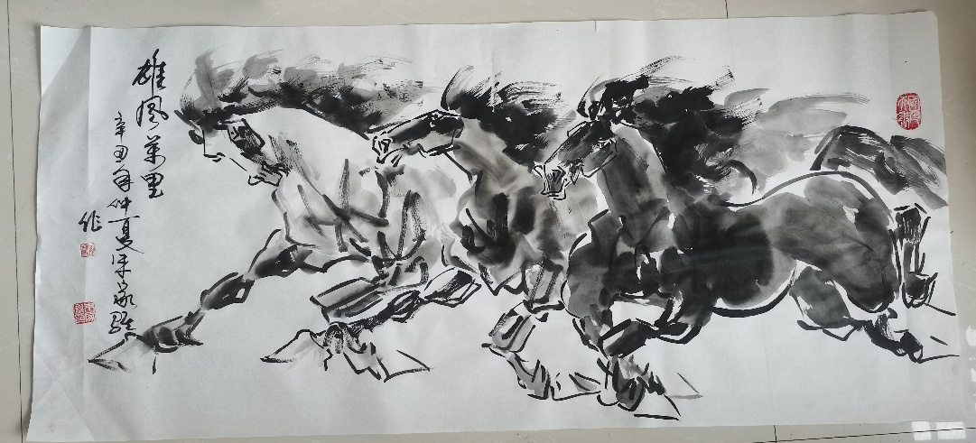 朱家骐1949生祖籍北京蒙古族为蒙八旗后裔,书香世家,受父母的影响朱老从小酷爱书画,只要是一有空就拿起毛笔写上几笔,对着《西游记》、《水浒传》、《三国演义》等连环画人物进行描摹。步入成年后,遍习中国历代碑帖精通篆隶楷草行各种书体,在十年特殊时期 ,从北京到内蒙古插队无论条件多么恶劣,他总要拿起树枝在地上划上几笔 ,或者在脑子里想象着绘画的构图与技法。在此期间他还参加了毛主席像绘画工作以及大字报的誊录。总之朱老从来没有放下书画这个他生命中不可磨灭的东西,无论怎样总得腾出时间进行练习学习。就像鲁迅先生所说:“时间就像海绵里的水,只要肯挤总还是有的。”正是朱老几十年霜晨雨露,坚持不懈,努力拼搏,丝毫不浪费学习的时间,才有了今日的成就。在朱家骐老先生身上看到了他笔下画的蒙古马精神,那种吃苦耐劳,奋发图强的精神!
