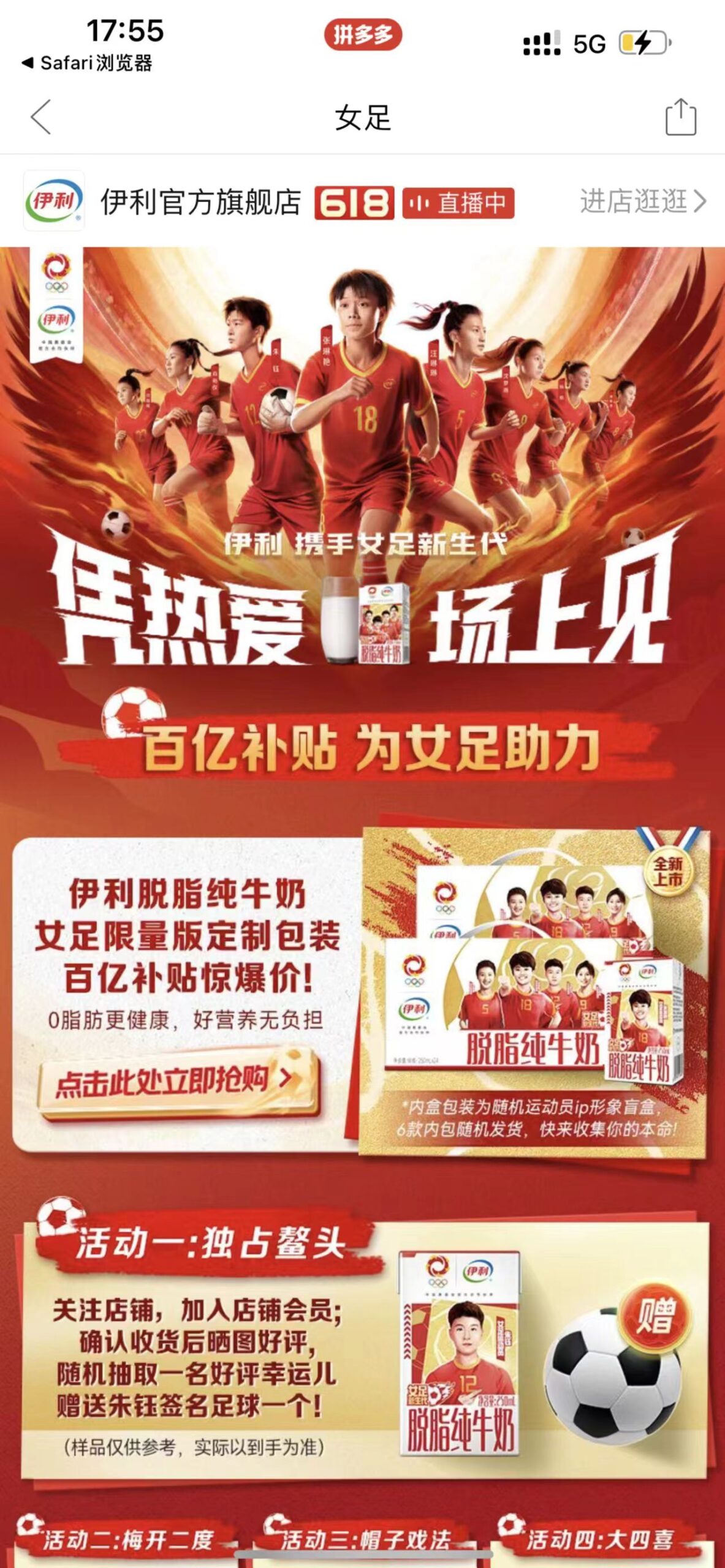 亚运倒计时100天之际,伊利推出亚运定制系列产品,并在淘宝天猫渠道首发上市。同时,伊利在钱塘江举办杭州亚运会官方指定乳制品启动仪式,开启伊利和淘天集团的亚运合作之路。伊利以实际行动助力健康中国的事业发展,不负心中热爱,以充沛的强健体魄奋斗拼搏,实现更高、更远、更强的中国梦。
