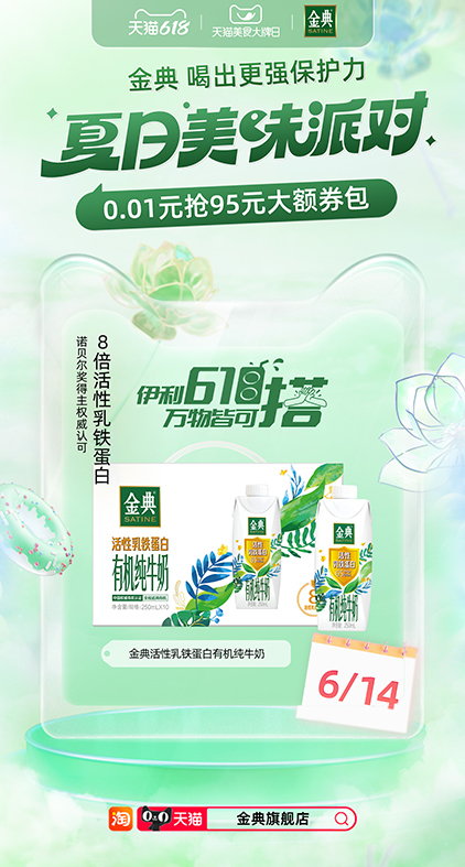618期间,伊利在各大电商平台强化精耕运营基础,同时创新开拓新模式、新渠道,勇于突破,成绩斐然,获得了销量、口碑双丰收。