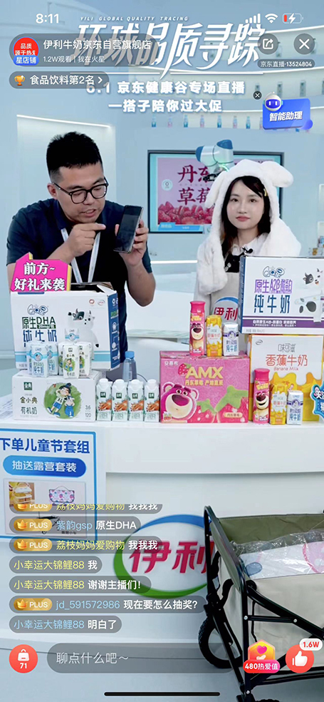 在品质领先方面,伊利坚持“像为我们家人生产产品一样100%用心”的品质初心,通过设立“全员、全过程、全方位”三全质量管理体系,为产品保驾护航。从6月1日到6月18日,店铺直播GMV超3500万,每天一个特色工厂溯源直播、全方位的产品展示、沉浸式的主播互动,让消费者在轻松愉快、有趣且充实的购物氛围中,得到心灵和情感的满足。同时,伊利发挥企业优势,发动全产业链全员进直播间,研发、质检、牧场员工,在直播间用自己的切实岗位体验与消费者分享知识,用这种方式让消费者充分感受到从牧场到工厂每个环节的高标准质量管理。