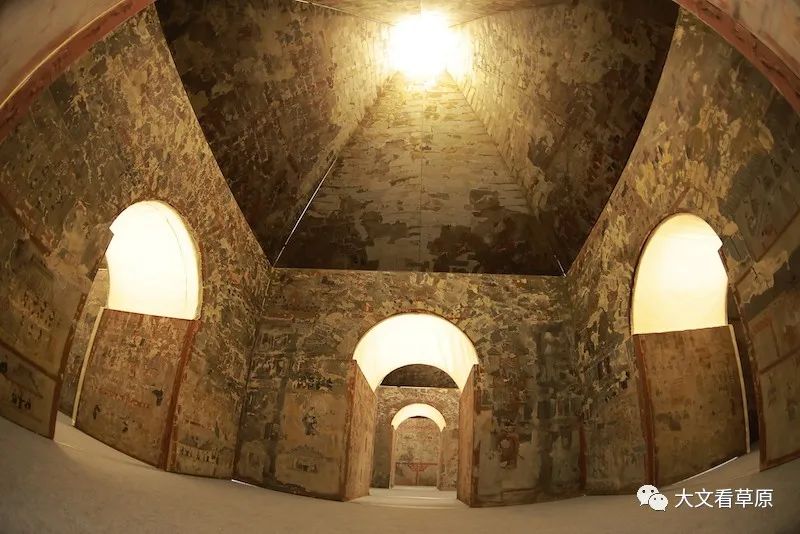 和林格尔壁画墓是东汉晚期的一座大型砖室壁画墓,在1972至1973年由内蒙古自治区博物馆等单位发掘。其知名度不及山西自1979年到2013年陆续出土了四座北朝墓室(1979年,娄睿墓壁画出土、2000年徐显秀墓壁画出土、2008年水泉梁墓壁画出土、2013年九原岗墓壁画出土),却让人看到两汉魏晋墓更为稚拙、简约、粗犷的风格。