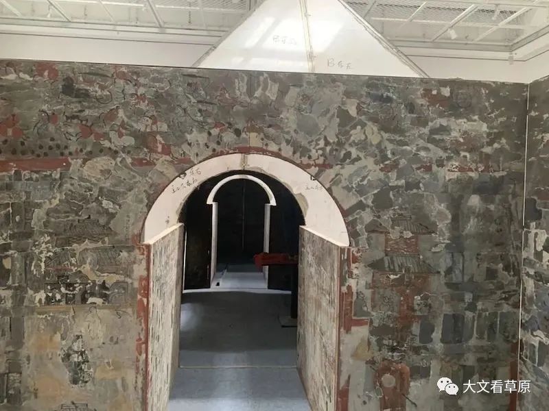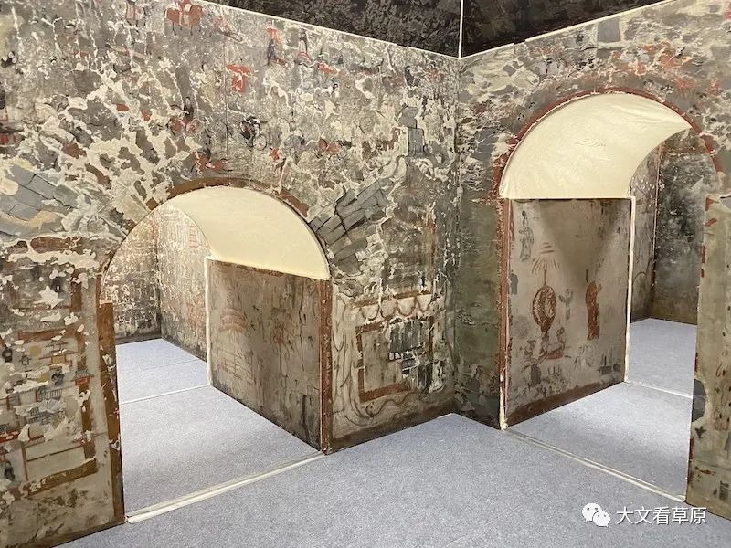 展览现场,以“全息摹复系统”复原的和林格尔东汉墓室壁画