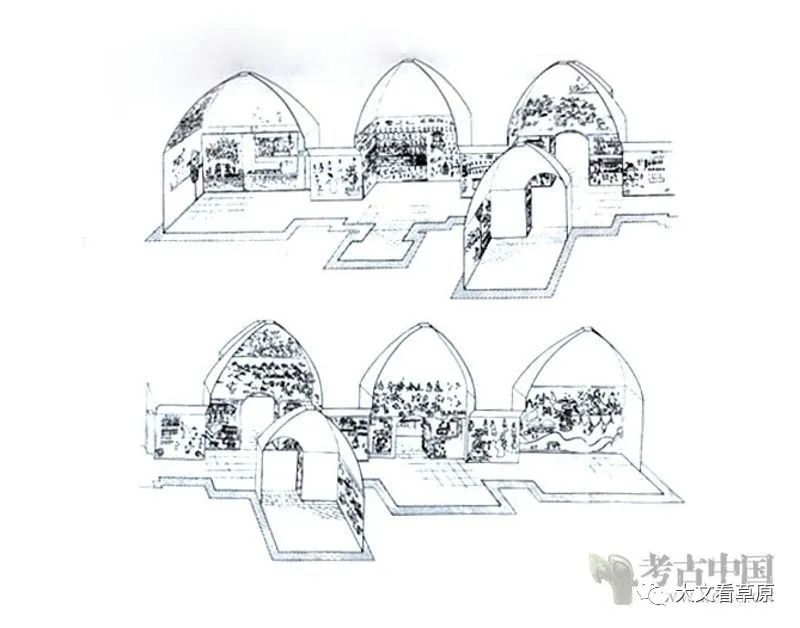内蒙和林格尔东汉壁画墓室结构图。 网络图