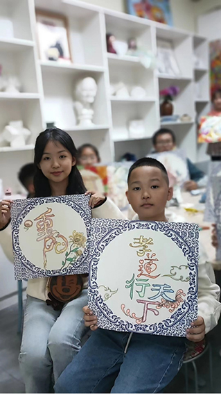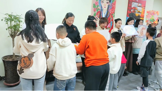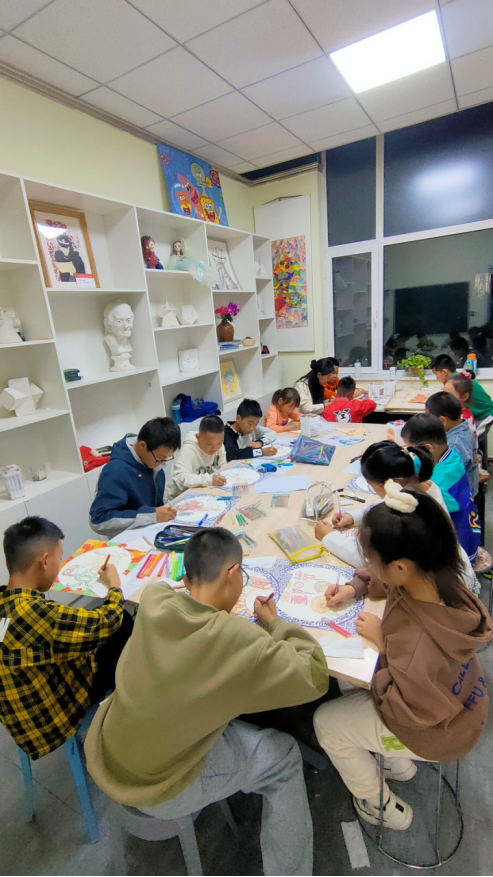 晨旭艺校小画家正在为爸爸妈妈创作重阳节绘画作品