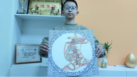 晨旭艺校小画家李浩森创作的重阳节主题作品