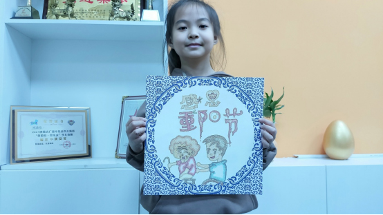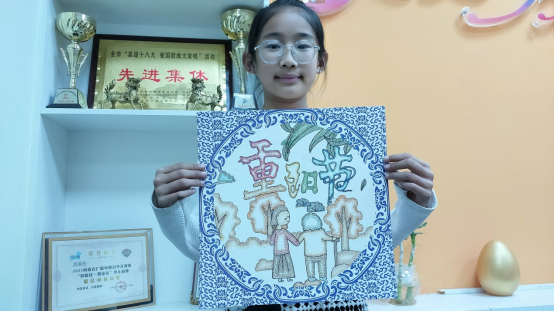 晨旭艺校小画家郑裕彤创作的重阳节主题作品