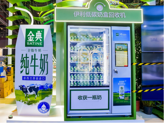伊利在展厅设置奶盒回收机倡导绿色低碳生活