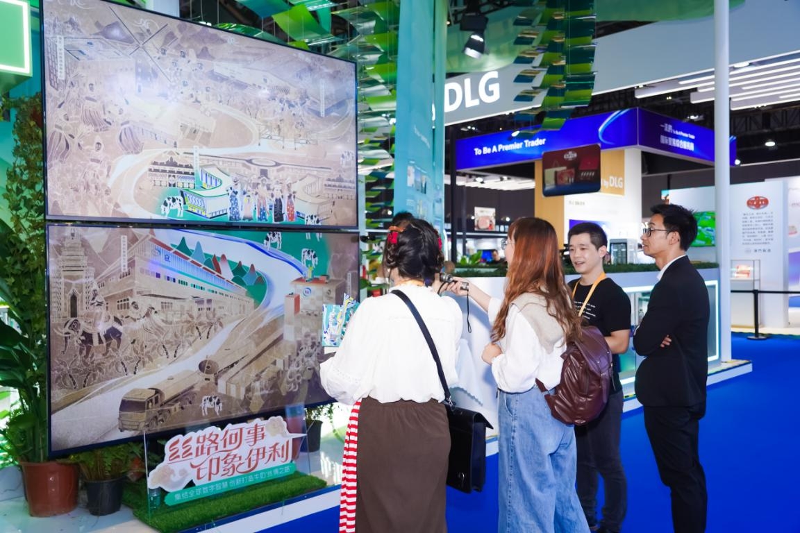 此外,伊利还在展厅设置了“丝路何事 印象伊利”互动区域,观众用光照射画卷,一条古朴生动的牛奶丝路便生动地呈现出来,吸引众多观众前来打卡。正如画卷所展示,伊利在新西兰、泰国、印尼等国家广泛布局,不断深化国际合作,走出了一条与“一带一路”同频共振的“乳业丝路”。