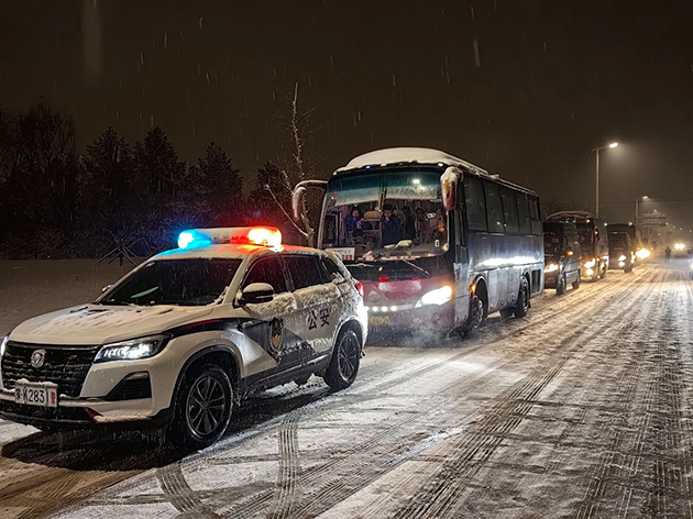 12月10日,鄂尔多斯市各旗区迎来降雪。飘飘洒洒的雪花在给人们带来清新空气和舒适感觉的同时,也给道路行车安全带来严重影响,由于路面积雪,从乌审旗出发前往东胜、康巴什、伊旗的6辆客车160余名学生滞留乌审旗和伊旗交界,伊金霍洛交警在得知这一情况后,迅速行动,组织警力与乌审旗交警、康巴什交警接力护送学生安全返校。