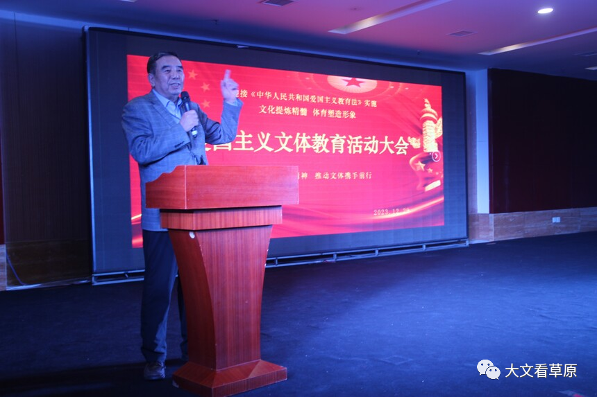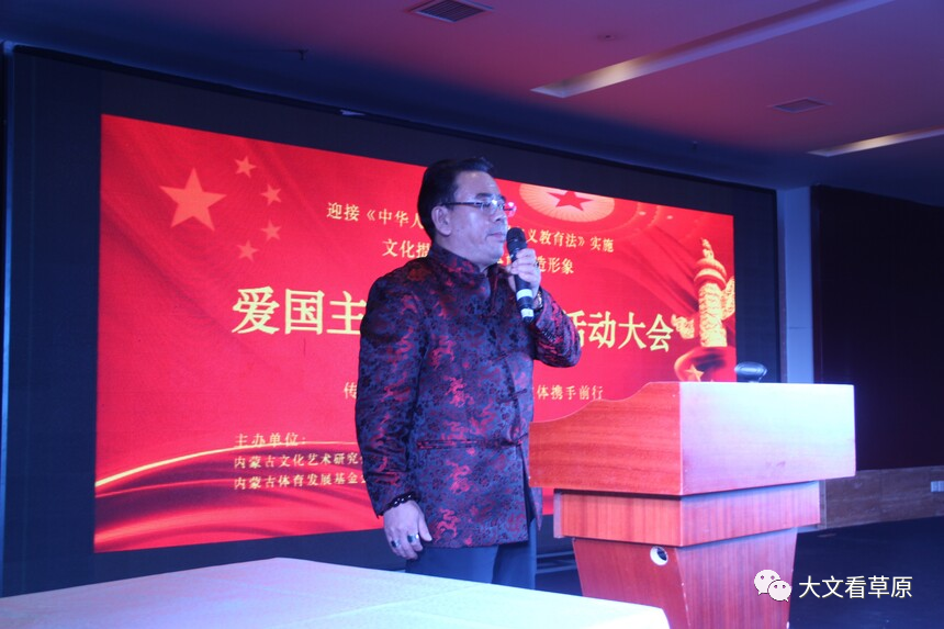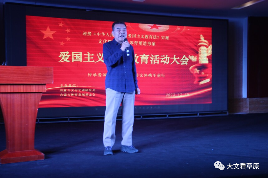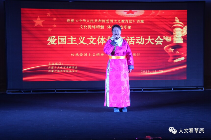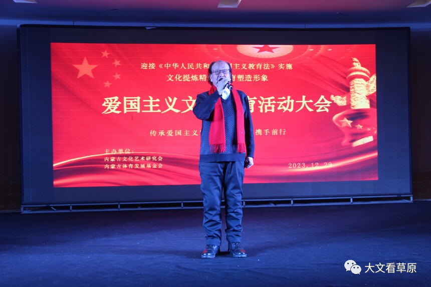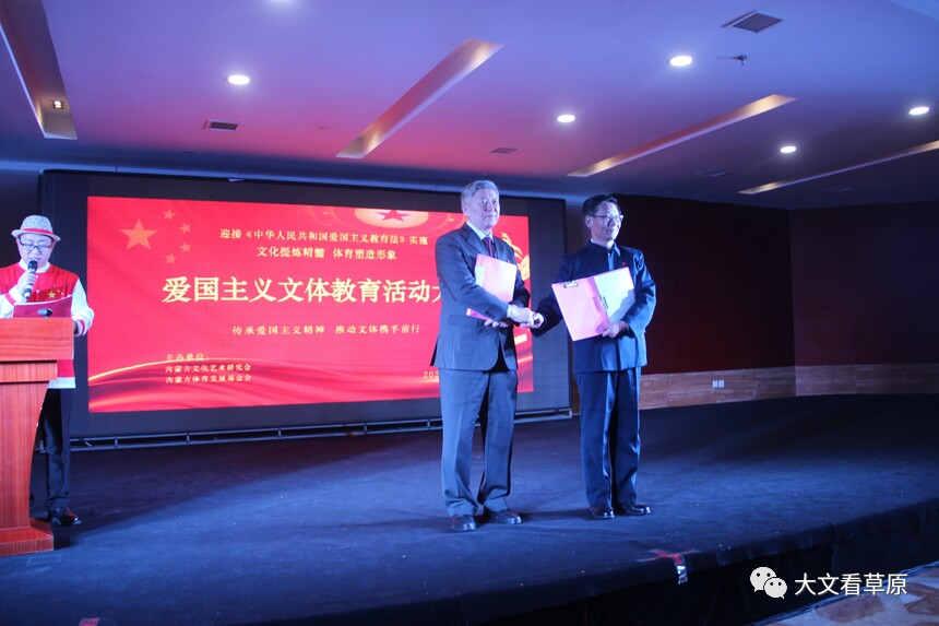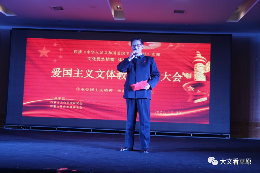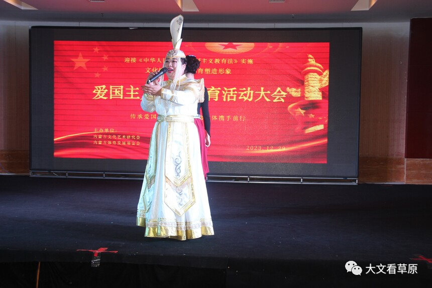 2023年12月29日,在《中华人民共和国爱国主义教育法》即将施行之际,内蒙古文化艺术研究会和内蒙古体育发展基金会以文化提炼精髓,体育塑造形象出发点,开展弘扬爱国主义精神,文体携手同行,助力内蒙古高质量发展为主题的大型爱国主义活动。