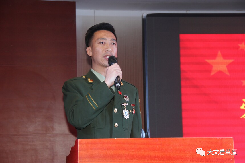 退伍军人代表李佳斌军姿登台发言表决心!