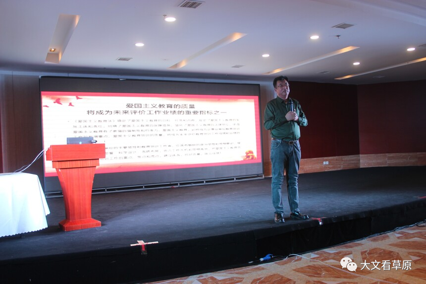 中国管理培训联盟主席、中国管理科学研究院培训部副主任、高级讲师韩晓宾授课,课题《把爱国主义教育落到实处》。