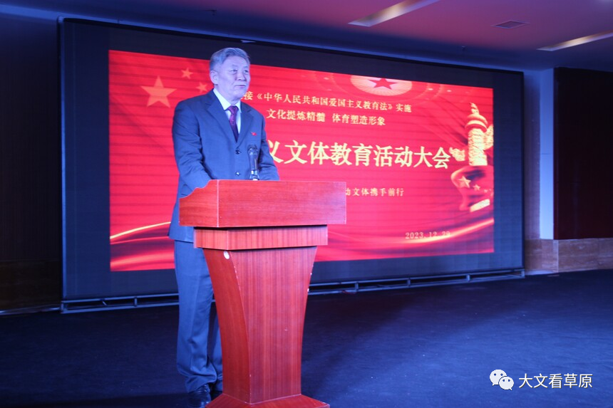 敖拉理事长说到:值此辞旧迎新,《中华人民共和国爱国主义教育法》即将颁布实施和我们共同开展“弘扬爱国主义精神、文体携手同行、助力内蒙古高质量发展”主题活动之际。向长期以来关心、支持、帮助内蒙古体育发展基金会建设事业的各级领导及相关厅局、社会组织、企业和各界人士表示真诚的感谢。