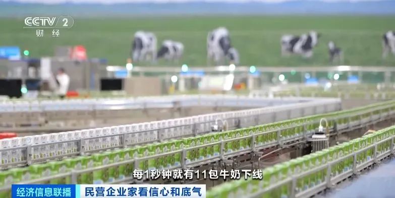 伊利集团董事长 潘刚:在伊利的智慧工厂,日处理牛奶6500吨,生产线1小时生产4万包牛奶,每1秒钟就有11包牛奶下线。这一个基地1天的生产量,可满足一个上千万人口的城市一天的饮奶量。