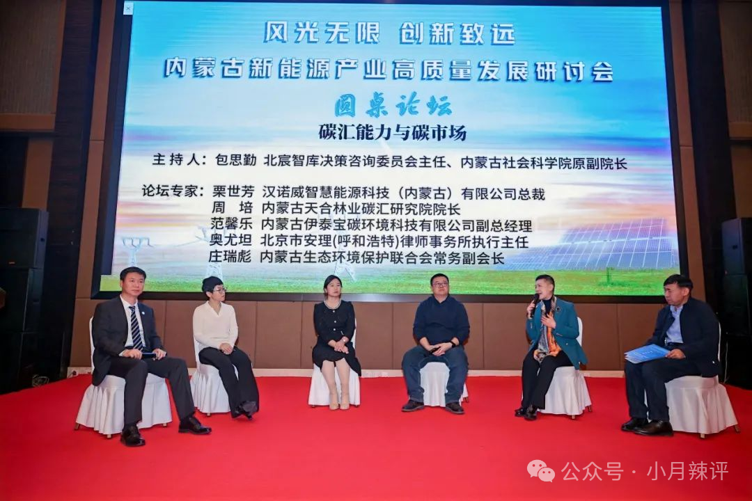 研讨会上,乌克兰科学院外籍院士熊健、上海奥威科技开发有限公司董事长华黎、中国环境科学学会生态环境认证专业委员会委员栾大龙、上海玛仕迪电气技术有限公司董事长李洪广、内蒙古北宸智库研究中心首席专家文风等13位专家作了主旨演讲,另有6位专家在“碳汇能力和碳汇市场圆桌论坛”作了主题发言。专家们从世界潮流、国家战略视角,透视分析内蒙古新能源产业的发展优势、潜力、路径和未来愿景,精彩之处不时赢得与会代表们热烈的掌声。