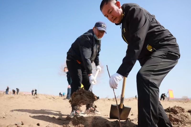 香港文汇网讯(记者王月 通讯员行盖)为积极响应“全民植树增绿,共建美丽中国”号召,4月8日,在内蒙古自治区赤峰市巴林左旗林东林场,近5000名干部群众开展义务植树“大会战”活动,植树现场,旗四大班子主要领导带头,大家分工协作,挖坑、栽树、浇水、培土,干劲十足,再次掀起科尔沁沙地综合治理新高潮,以实际行动践行“绿水青山就是金山银山”的生态理念。