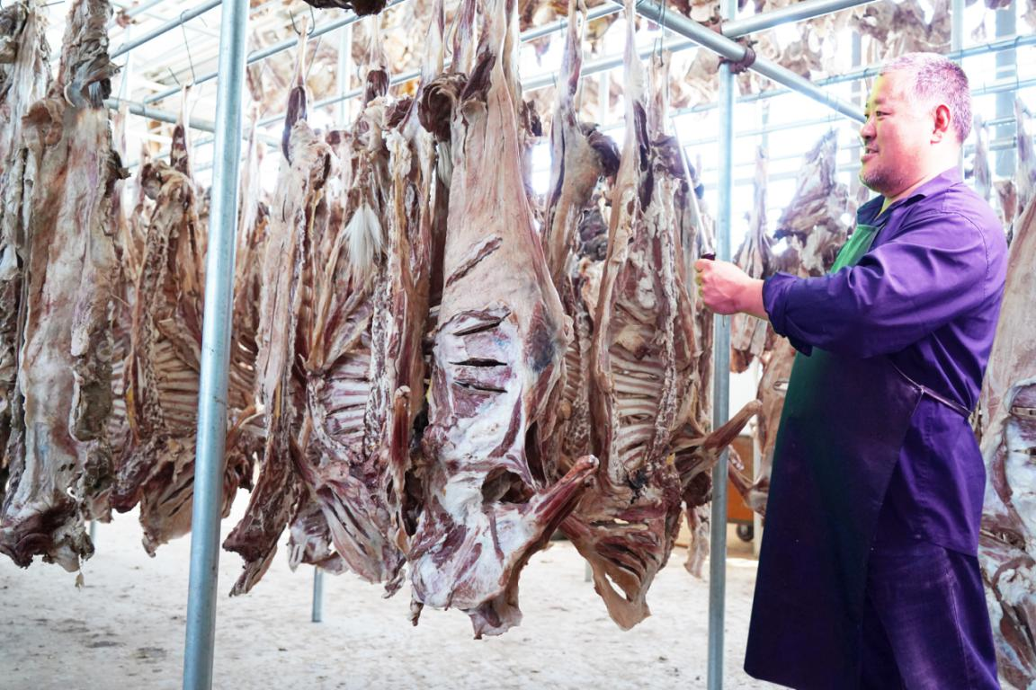 建军合作社王建军严把“风干肉”质量品控(伊金霍洛旗融媒体中心供图)
