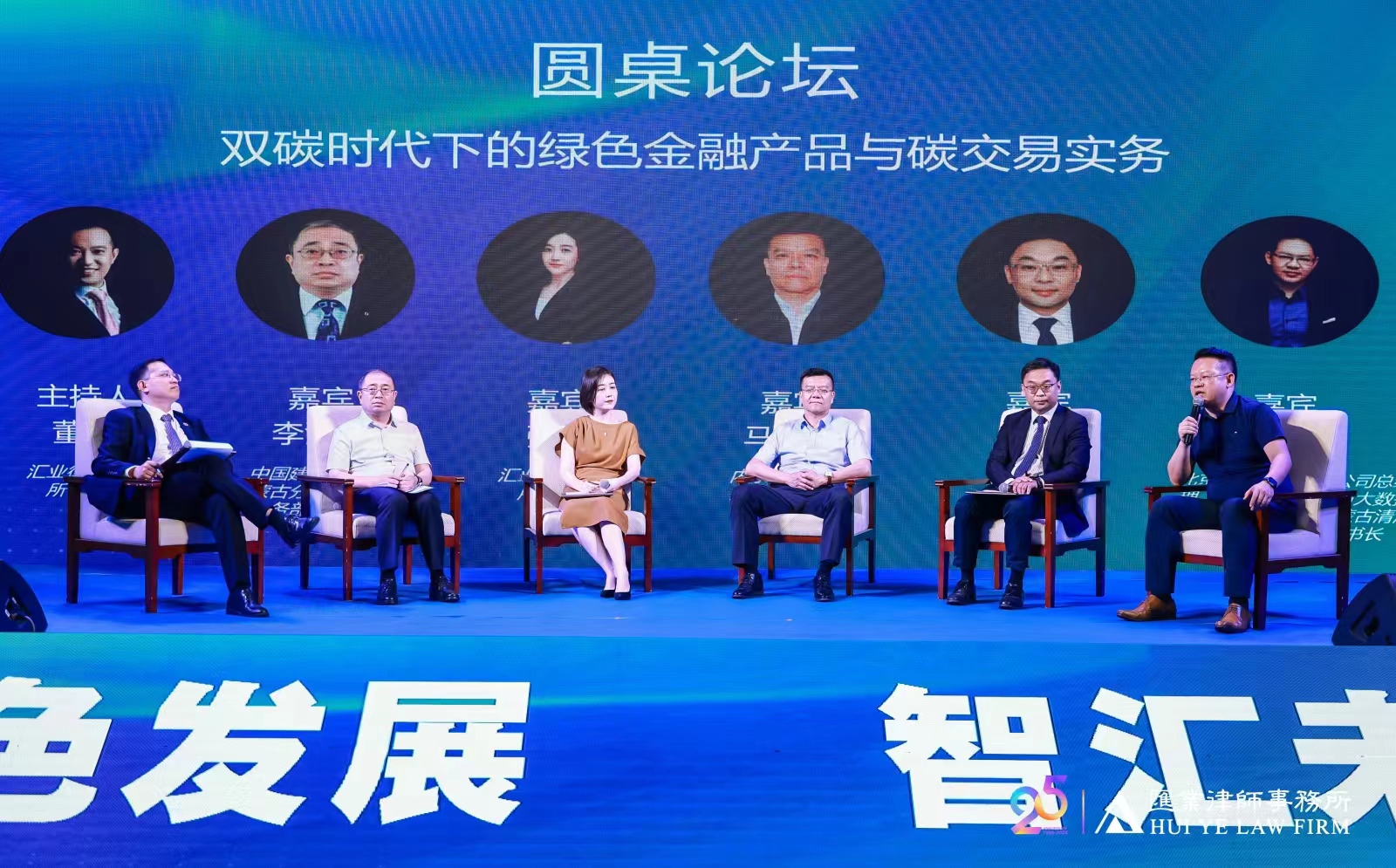 随后的圆桌讨论环节由上海汇业律师事务所合伙人董琛律师主持,中国建设银行内蒙古分行公司业务部总经理李海波、上海汇业律师事务所合伙人张奇、内蒙古产权交易中心创新孵化中心(内蒙古生态环境资源交易平台)负责人马湘毅、上海市节能减排中心有限公司总经理李亮和北京海归投资有限公司总经理、内蒙古云计算与大数据产业协会会长、内蒙古清洁能源产业协会秘书长王钢,围绕“双碳时代下的绿色金融产品与碳交易实务”展开了精彩的对话。他们结合2023年绿色金融的政策法规、碳金融的新概念、金融法律业务发展趋势与内蒙古的绿色金融发展情况,展现了内蒙生态积极发展背后的制度成因、介绍了助力国家双碳战略的金融工具与政策。