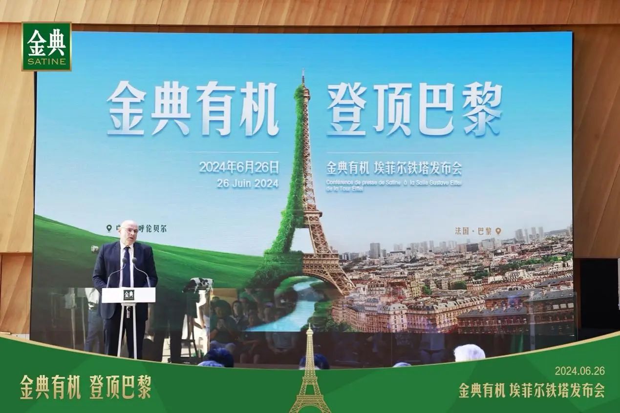 而法国前国务卿、前巴黎市委员 Jean-Marie Le Guen现场致辞表示:“2024年是中法建交60周年,对中法两国都意义非凡,欢迎像金典这样的中国好品牌来到法国,促进中法文化交流和经济贸易往来。金典有机牛奶的源产地呼伦贝尔自然风景秀丽,有一望无际的草原,也号召法国巴黎人民可以走出去,感受中国呼伦贝尔的自然风景和文化魅力,去内蒙古呼伦贝尔品尝金典有机牛奶。”