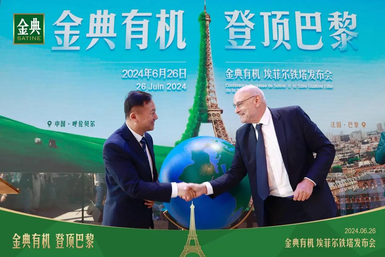 中国内蒙古呼伦贝尔限定有机牧场与法国巴黎同处北纬48°,东西相互遥望,在文化、自然、经济等多个维度碰撞融合。发布会现场,伊利集团副总裁张轶鹏与法国前国务卿 前巴黎市委员Jean-Marie Le Guen共同开启了金典北纬48°溯源仪式,对彼此携手加深巴黎与内蒙古呼伦贝尔的多方合作互动、推动中法友好往来表达了深切的期许。值此中法建交60周年,呼伦贝尔的自然风光与巴黎文明的独特性,也吸引着彼此往来交流,跨越欧洲大陆,携手奔向世界舞台。