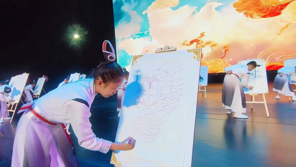 原创开场节目《龙颜》王舒冉正在一笔画龙