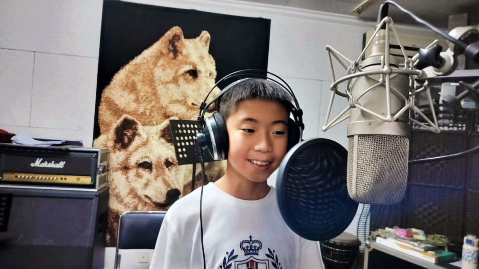 许博涵正在录制他的歌曲《追风少年郎》
