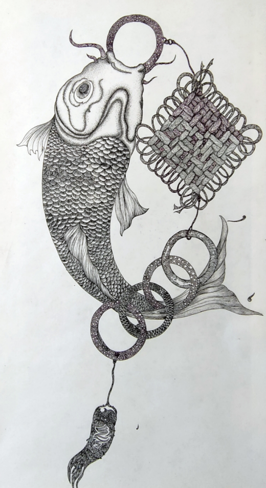 许博涵冬奥主题钢笔画作品《舞鱼迎奥》