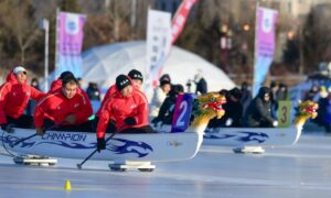 冰上龙舟赛 王正 摄 1月18日,2024—2025冰上龙舟超级联赛总决赛暨内蒙古锡林郭勒盟第三届冰上龙舟大赛在锡林浩特市开幕,现场吸引了2000余名游客驻足观赛,热情欢呼与加油助...