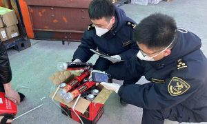 香港文汇网讯(记者 王月 特约记者 梁晓虹)3月2日上午,在二连浩特公路口岸环宇物流园区,二连海关关员在一辆出境货车上发现约22吨未申报危险货物。 呼和浩特海关集中审像中心通过H9...