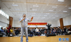大型交响诗画《我愿以身许国》演员正在进行排练。新华网 杨腾格尔摄 《我愿以身许国》是一部以交响诗画形式全方位展现“两弹一星”元勋故事的大型舞台剧,1月17日晚将在内蒙古艺术剧院进行...